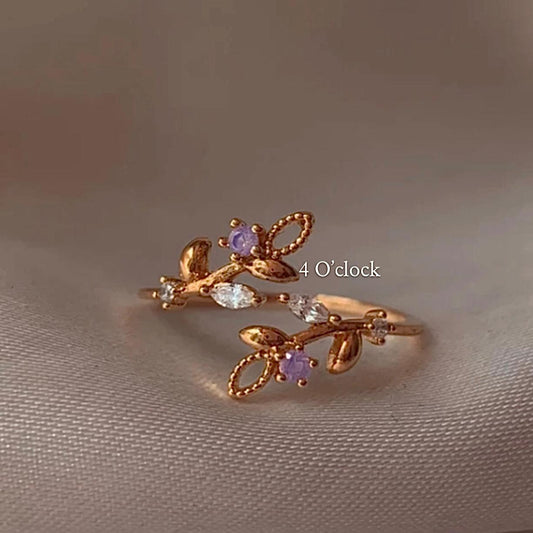 💍R180: Stainless Steel Zircon Minimalistic Finger Ring: Purple Leaf (With Box)✨