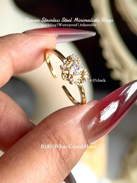 💍R182: Stainless Steel Zircon Minimalistic Finger Ring: White Crystal Heart (With Box)✨