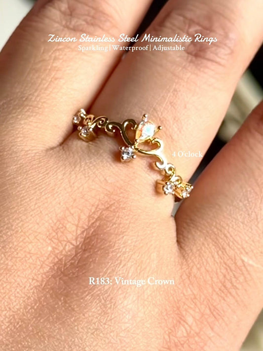 💍R183: Stainless Steel Zircon Minimalistic Finger Ring: Vintage Crown (With Box)✨(1Pc)