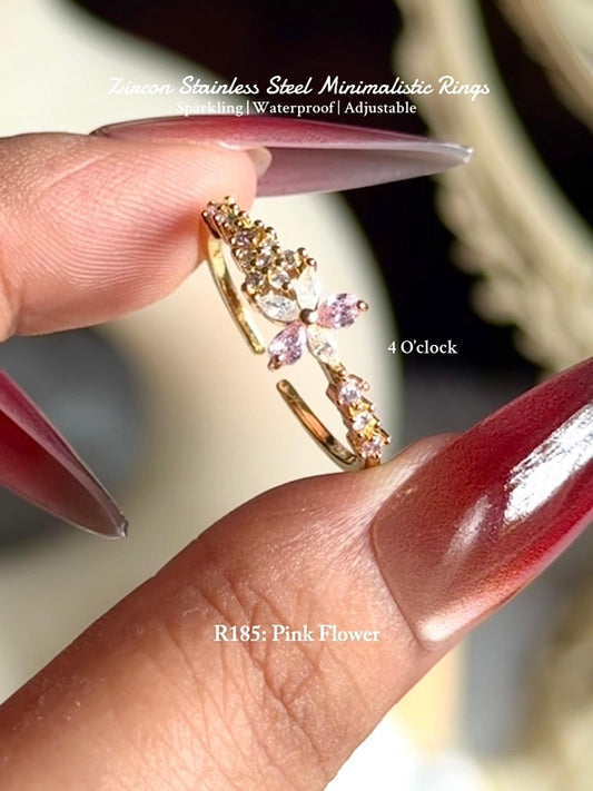 💍R185: Stainless Steel Zircon Minimalistic Finger Ring: Pink Flower (With Box)✨