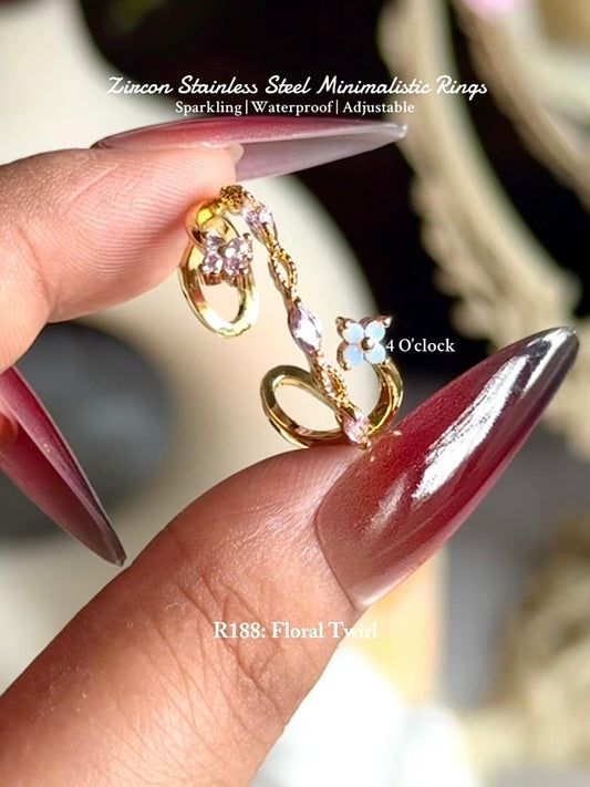 💍R188: Stainless Steel Zircon Minimalistic Finger Ring: Floral Twirl (With Box)✨