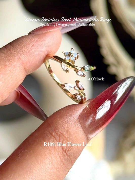 💍R189: Stainless Steel Zircon Minimalistic Finger Ring: Blue Flower Leaf (With Box)✨