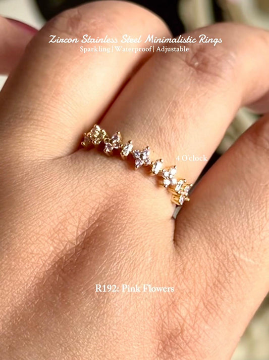 💍R192: Stainless Steel Zircon Minimalistic Finger Ring: Pink Flowers (With Box)✨