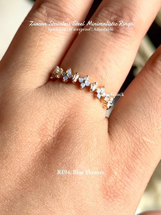 💍R194: Stainless Steel Zircon Minimalistic Finger Ring: Blue Flower (With Box)✨