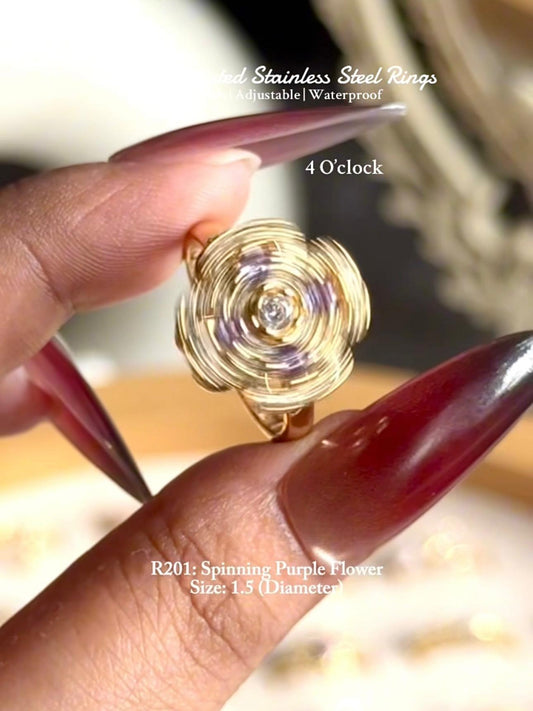 💍R201: Stainless Steel Zircon Minimalistic Finger Ring: Spinning Anxiety Purple Flower (With Box)✨