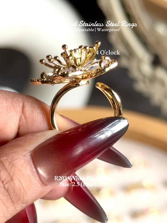 💍R213: 18k Gold Plated Stainless Steel Finger Rings: White Sparking Flower✨