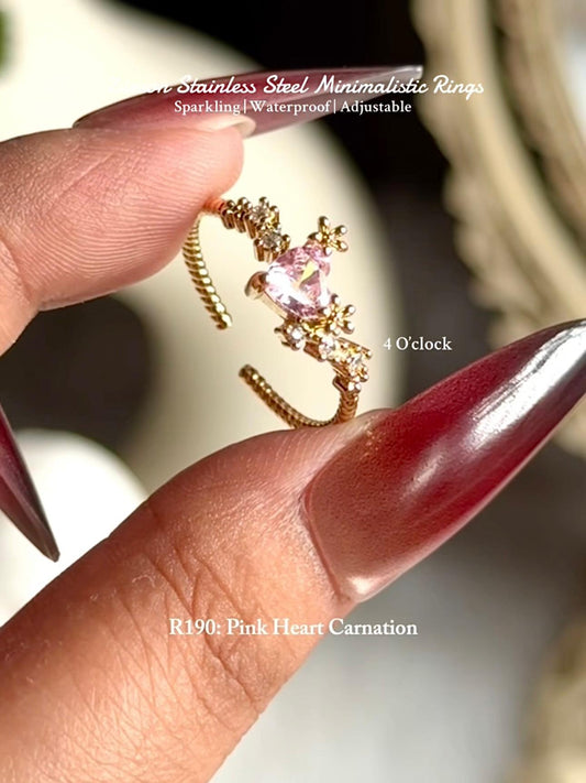 💍R190: Stainless Steel Zircon Minimalistic Finger Ring: Pink Heart Carnation (With Box)✨