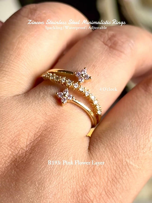 💍R193: Stainless Steel Zircon Minimalistic Finger Ring: Pink Flower Layer (With Box)✨
