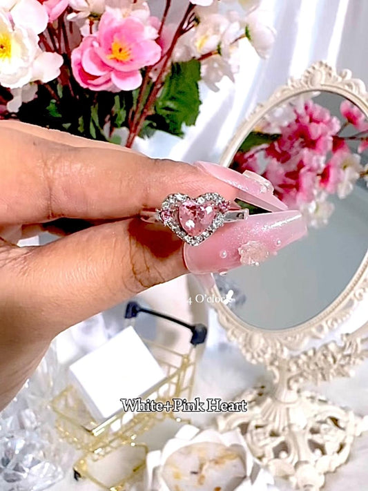 ✨🌸110: Pink Finger Ring: White+Pink Heart🌸✨