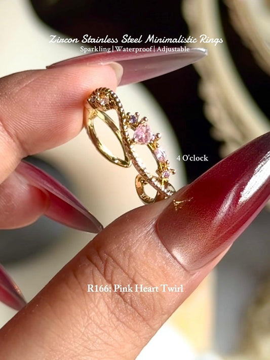 💍R166: Stainless Steel Zircon Minimalistic Finger Ring: Pink Heart Twirl (With Box)✨
