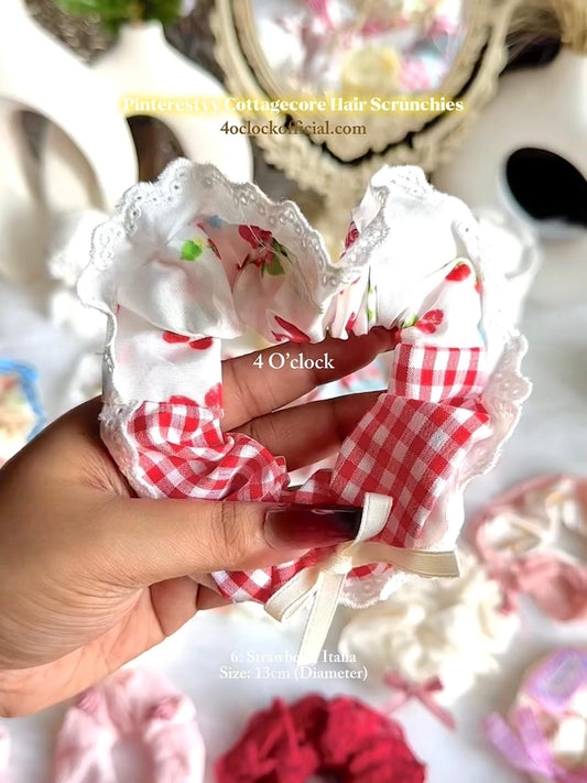 🍓6. Pinteresty Cottagecore Hair Scrunchie - Strawberry Italia🍰