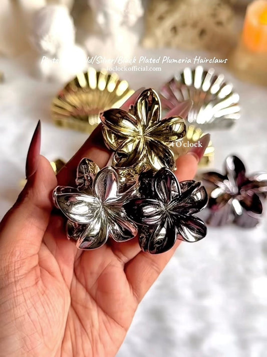 🐚Pinteresty Plumeria Glow Hair Claws: Black - Glossy (Small)🦀✨
