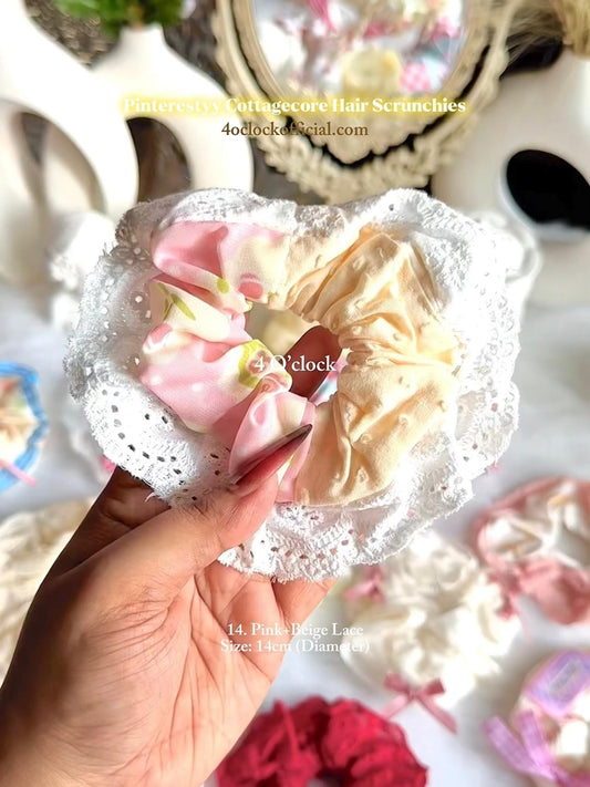 🍓14. Pinteresty Cottagecore Hair Scrunchie - Pink+Beige Lace🍰