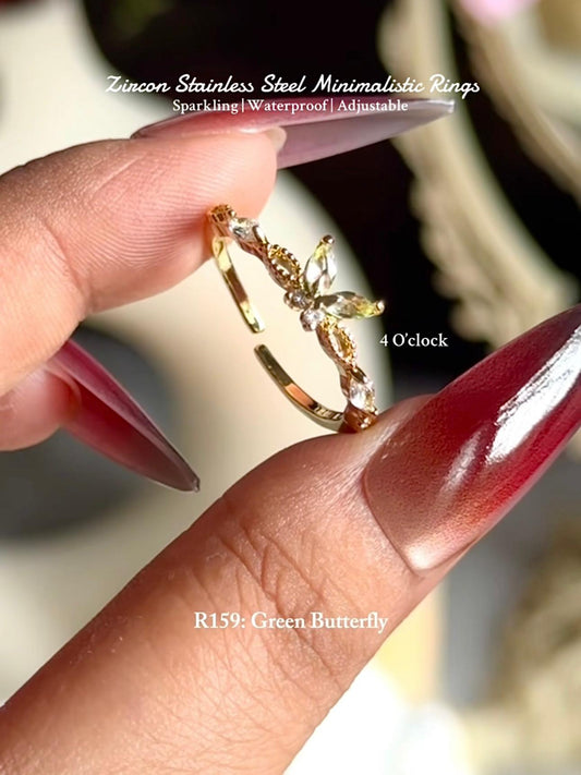 💍R159: Stainless Steel Zircon Minimalistic Finger Ring: Green Butterfly (With Box)✨