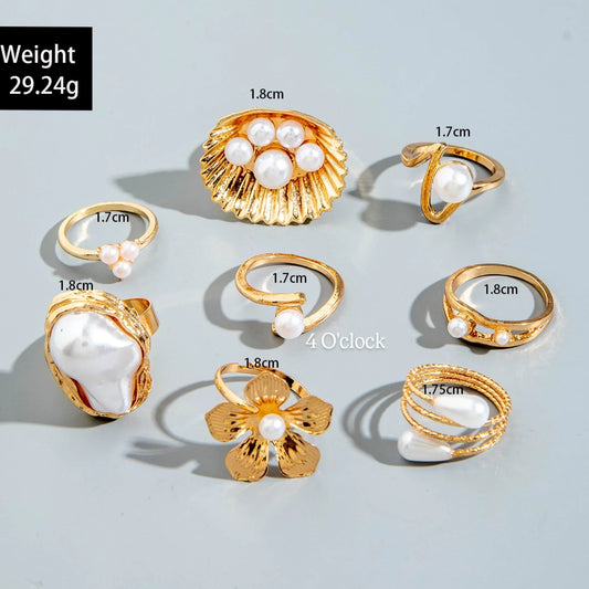 ✨RS40: Maximalistic Finger Ring Sets (Golden) - 8pcs (Full set Non adjustable)