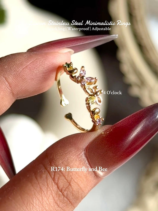 💍R174: Stainless Steel Zircon Minimalistic Finger Ring: Butterfly and Bee (With Box)✨