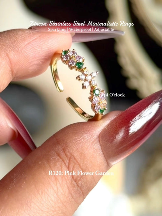 💍R120: Stainless Steel Zircon Minimalistic Finger Ring: Pink Flower Garden (With Box)✨