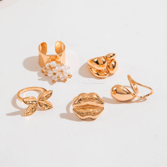 ✨RS86: Maximalistic Finger Ring Sets (Golden) - 5pcs (Adjustable-Non adjustable mixed sizes)