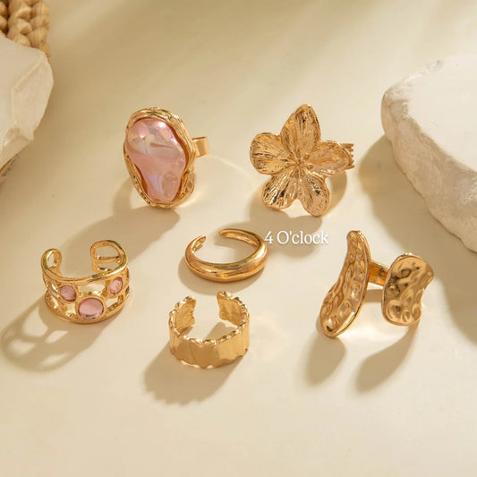 ✨RS58: Maximalistic Finger Ring Sets (Golden) - 6pcs (Full set adjustable)