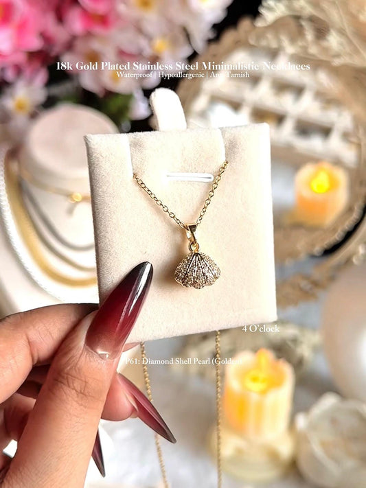 ✨P61: 18k Gold Plated Stainless Steel Pendant:Diamond Shell Pearl(Golden)✨