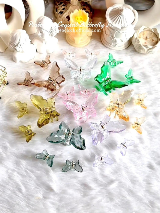 🦋✨Small Crystal Clear Butterfly Hair Claw : Transparent Pink✨🦋