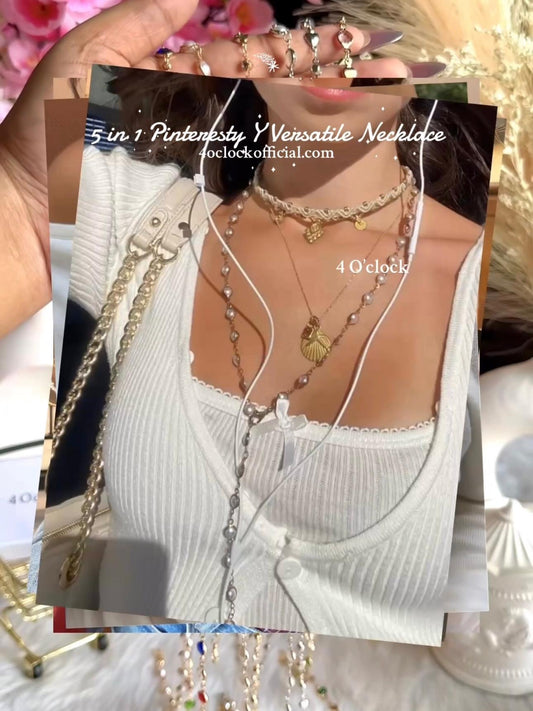✨5 in 1 neckpiece /handchain / bracelet stack: Pearl Silver💫