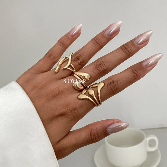 ✨RS107: Maximalistic Finger Ring Sets (Golden) - 3pcs (Full set adjustable)