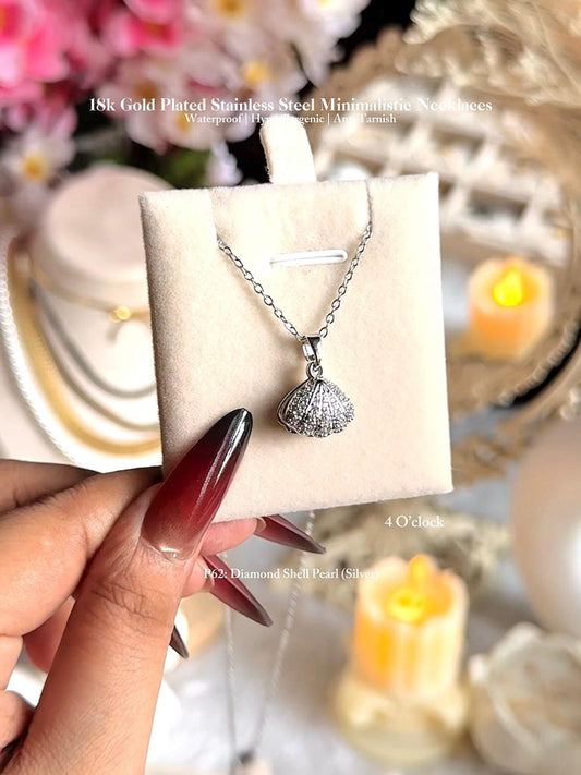 ✨P62: 18k Gold Plated Stainless Steel Pendant:Diamond Shell Pearl(Silver)✨