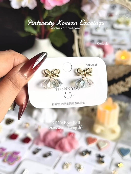 🫰🏻KE20: Korean Earrings: Bow Bell 🎀✨