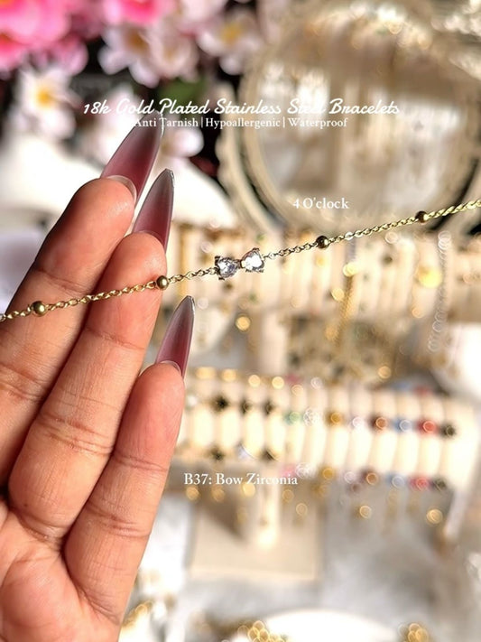 ⚜️B37: 18k Gold Plated Stainless Steel Minimalist Bracelet: Bow Zirconia✨