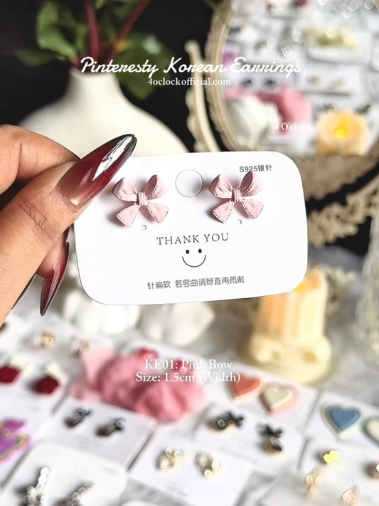 🫰🏻KE01: Korean Earrings: Pink Bow🎀✨