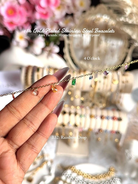 ⚜️B32: 18k Gold Plated Stainless Steel Minimalist Bracelet:Rainbow Drop✨