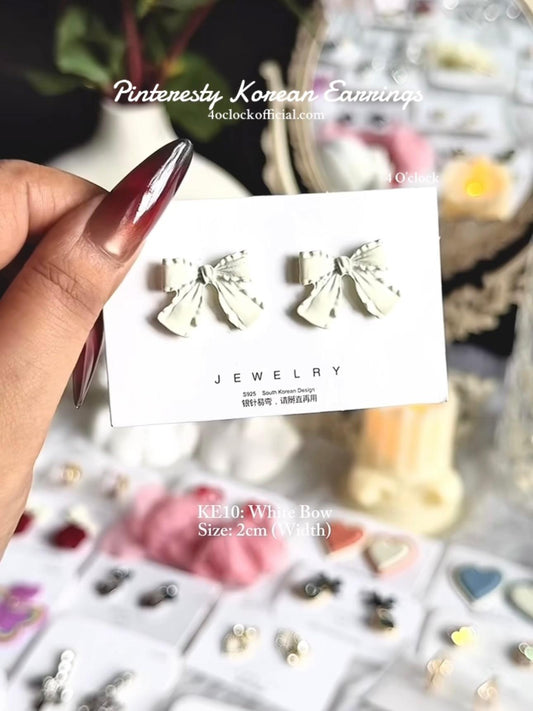 🫰🏻KE10: Korean Earrings: White Bow 🎀✨