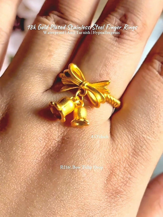 💍R216: 18k Gold Plated Stainless Steel Finger Rings: Bow Tulip Drop✨ (With Box)