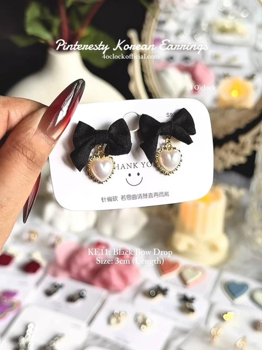 🫰🏻KE11: Korean Earrings: Black Bow Drop🎀✨