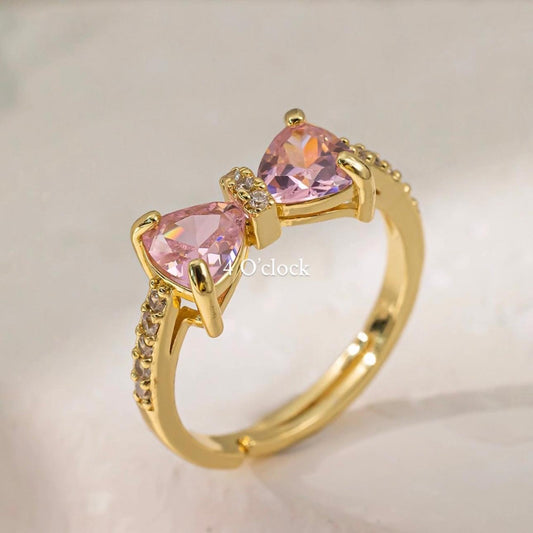 💍R210: 18k Gold Plated Stainless Steel Finger Rings: Pink Bow✨