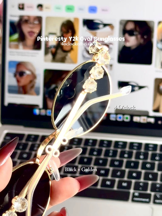 S37: Pinteresty Y2K Diamond Metal Oval Sunglasses - Transparent + Golden (with box)