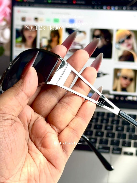 S28: Pinteresty Y2k Metal Hollow Sunglasses - Black + Silver (with box) Unisex