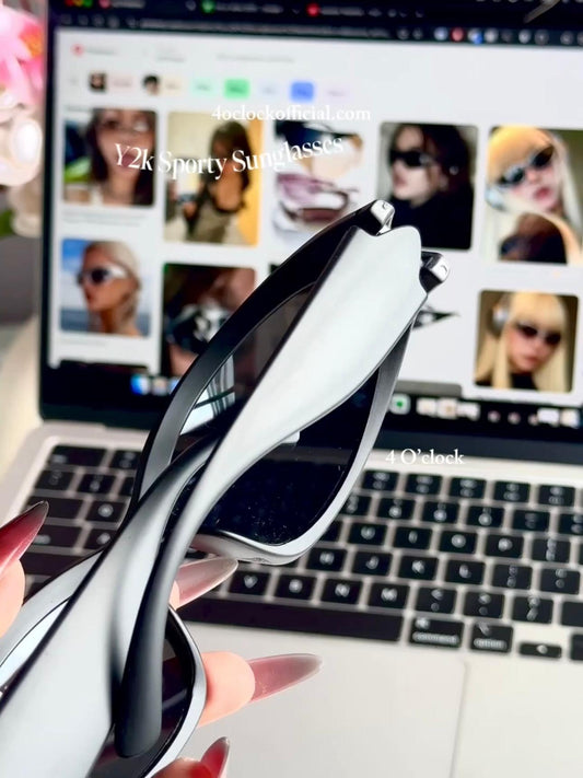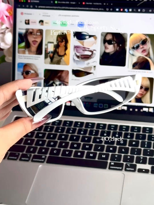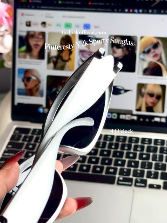 S08: Pinteresty Y2k Sports Sunglasses - Light Silver + Black (with box) Unisex