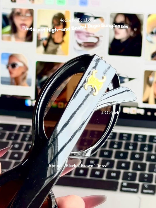 S15: Pinteresty High-End Brand Dupe Round Sunglasses - Black + Brown tinted (with box)