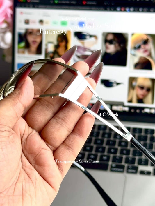 S26: Pinteresty Y2k Metal Hollow Sunglasses - Transparent + Silver (with box) Unisex