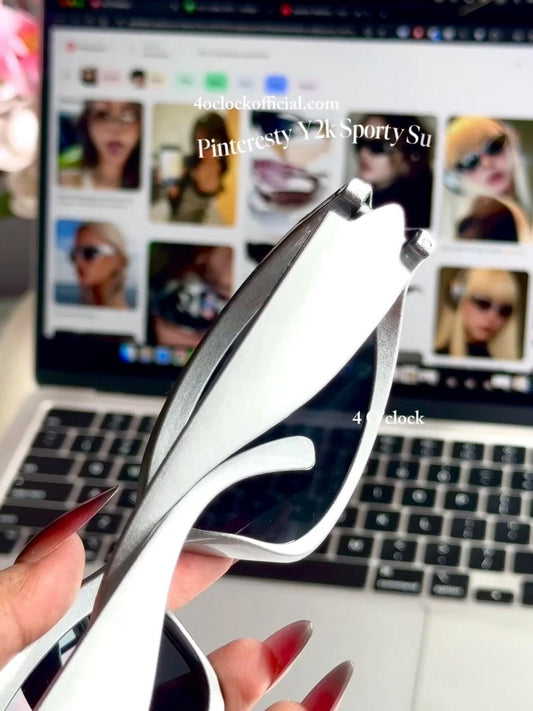 S09: Pinteresty Y2k Sports Sunglasses - Silver + Silver (with box) Unisex
