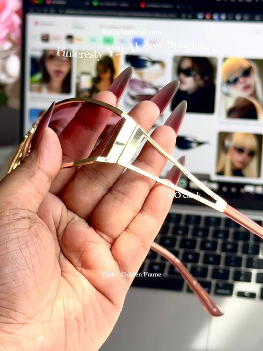 S29: Pinteresty Y2k Metal Hollow Sunglasses - Pink + Golden (with box) Unisex