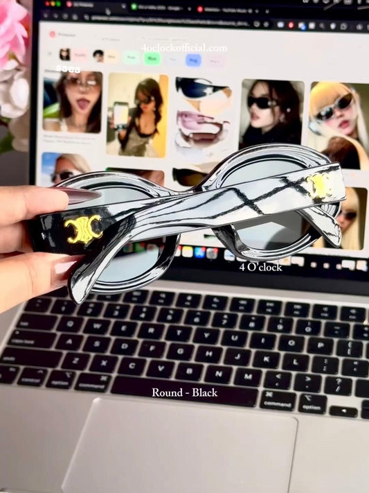 S12: Pinteresty High-End Brand Dupe Round Sunglasses - Black (with box)