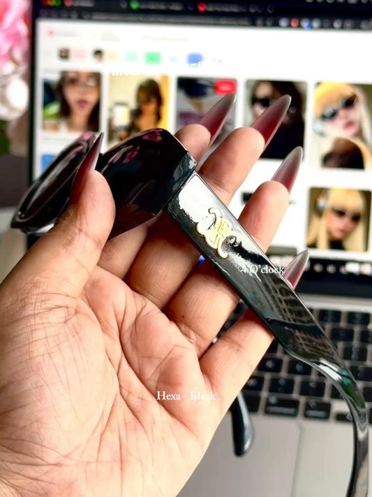 S20: Pinteresty High-End Brand Dupe Sunglasses - Hexa-Black (with box)