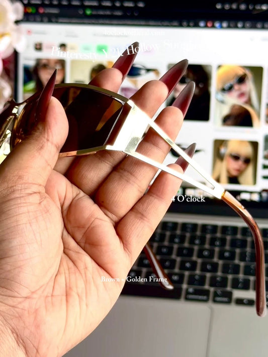 S25: Pinteresty Y2k Metal Hollow Sunglasses - Brown + Golden (with box) Unisex