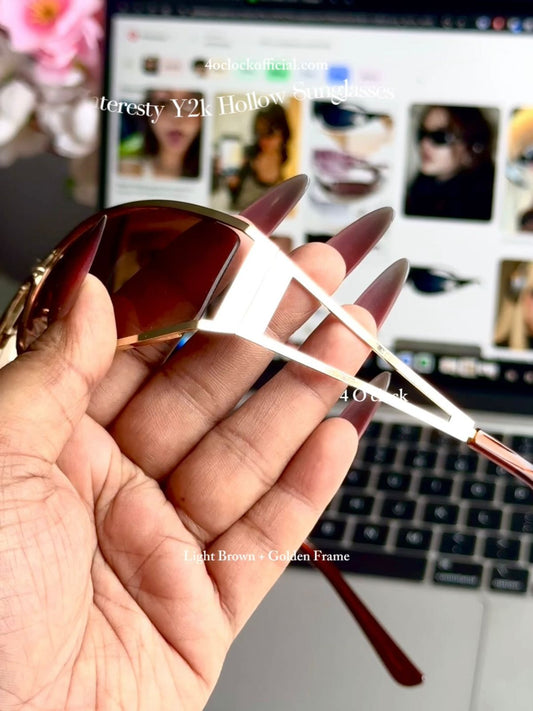 S27: Pinteresty Y2k Metal Hollow Sunglasses - Light Brown + Golden (with box) Unisex