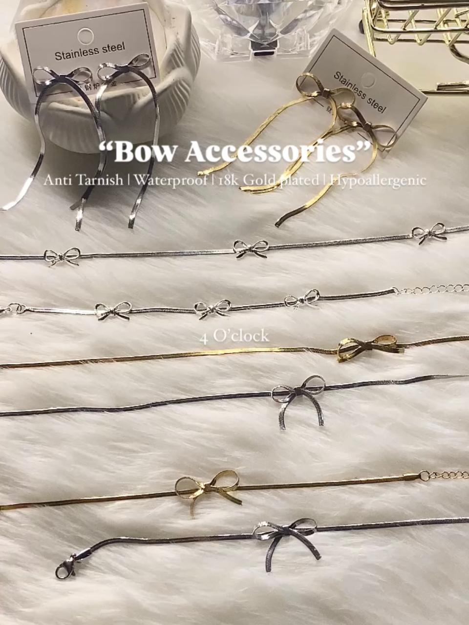 Stainless steel earrings, stainless choker, coquette bow earrings, Golden earrings, Silver earrings, Pinterest earrings, Pinterest finds, Coquette bow bracelet, Coquette Bow choker 🎀