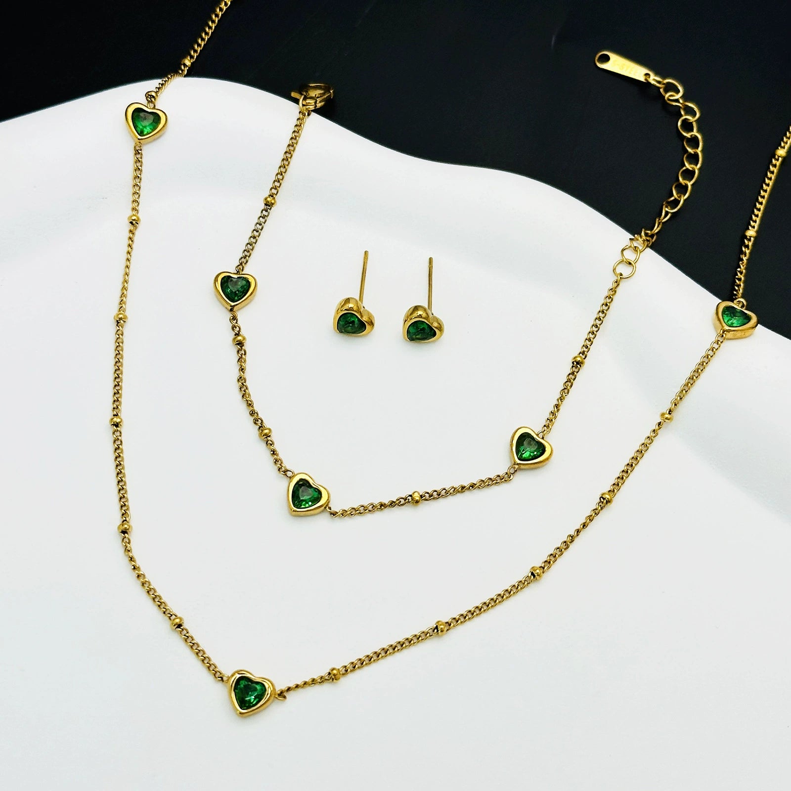 ✨P57: 18k Gold Plated Stainless Steel Pendant:Green Heart✨