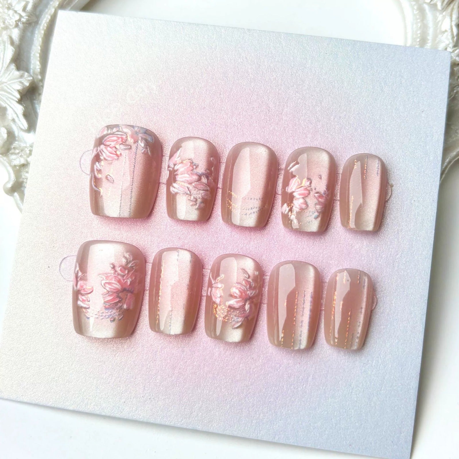 N30: Press On Nails: Sakura Empress. Size M (10 Pcs) - With 12pcs FREE glue stickers.